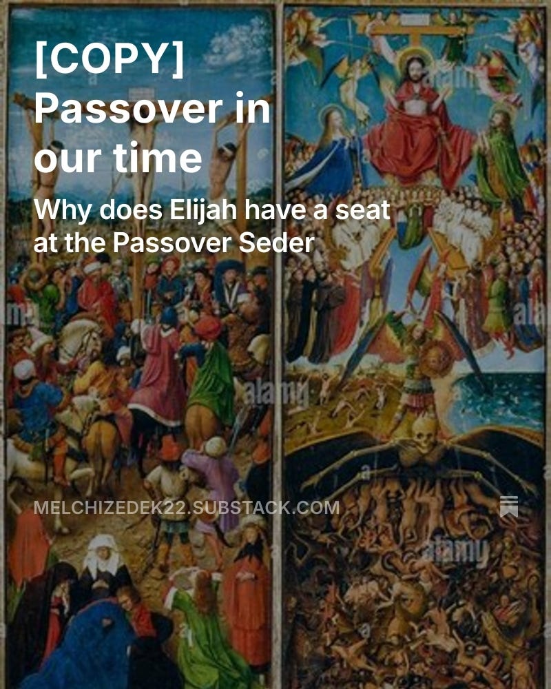 Next comes Elijah!The Tares and the WheatMichael MasonMar 29, 2026310ShareIn this season of Easter and Passover, Christians must not forget that Jesus is your Passover Lamb! And Jews must remember next comes the Passover Angel!Elijah has come to separate the Tares from the WheatIt's that time!